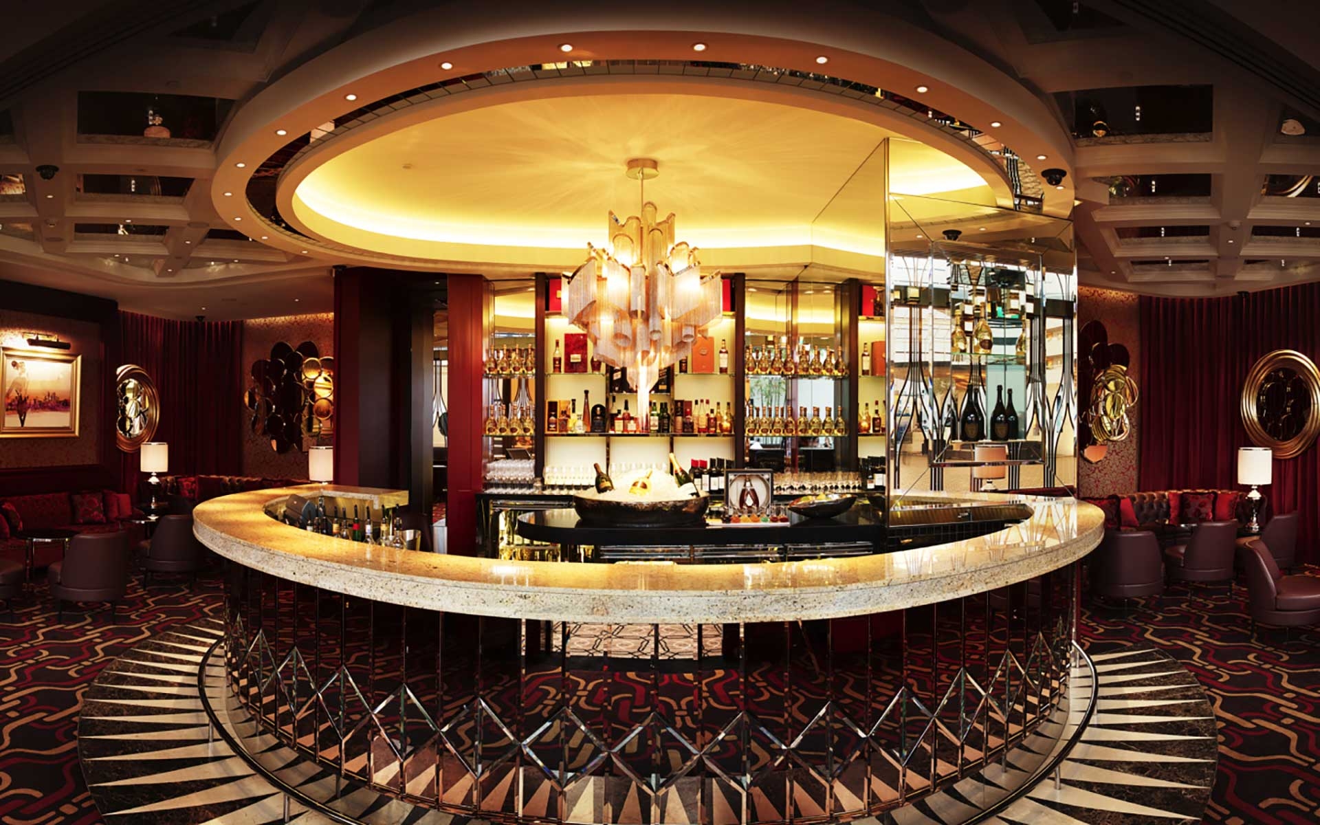 La Vie serves the finest French champagne and Red Design Group took inspiration from this to create the opulent and elegant interior. The colour palette references the warm pink, gold, and red tones of champagne and champagne labels. The use of mirror, glass, patterned carpet and luxurious fabrics brings luxury to the space. A beautiful central bar provides a sense of theatre while the external gold fretwork references Art Nouveau design, which is strongly associated with sophisticated Parisian culture.